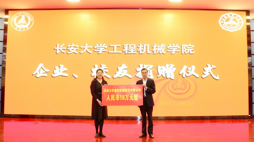 2021年4月18日,长安大学隆重举行建校70周年校庆。bb贝博Ballbet股份总经理龙宏欣,副总经理马辉艳、刘永刚应邀参加校庆活动,并出席长安大学机械工程学院奖教奖(助)学金颁奖典礼暨企业报告会。